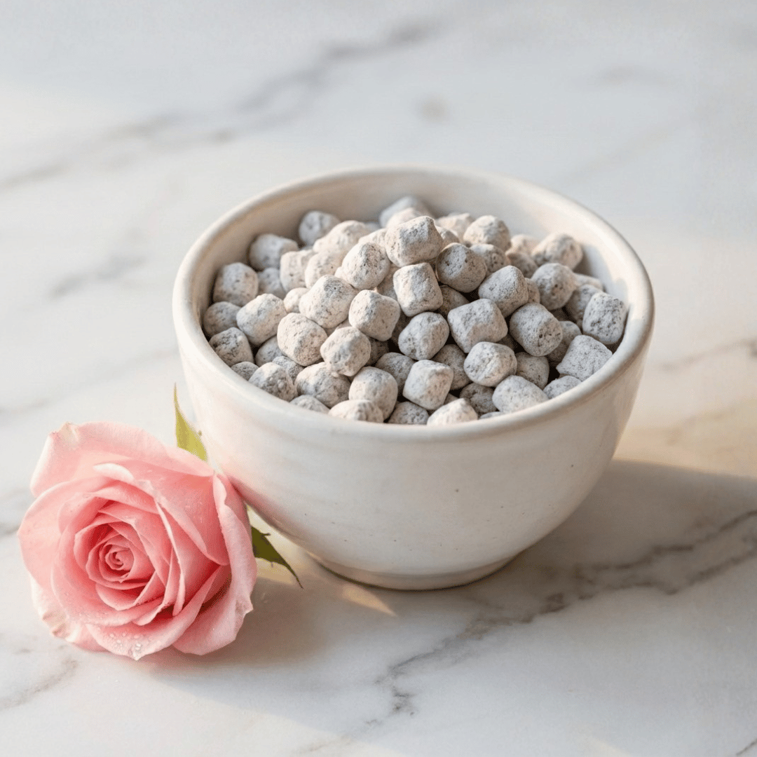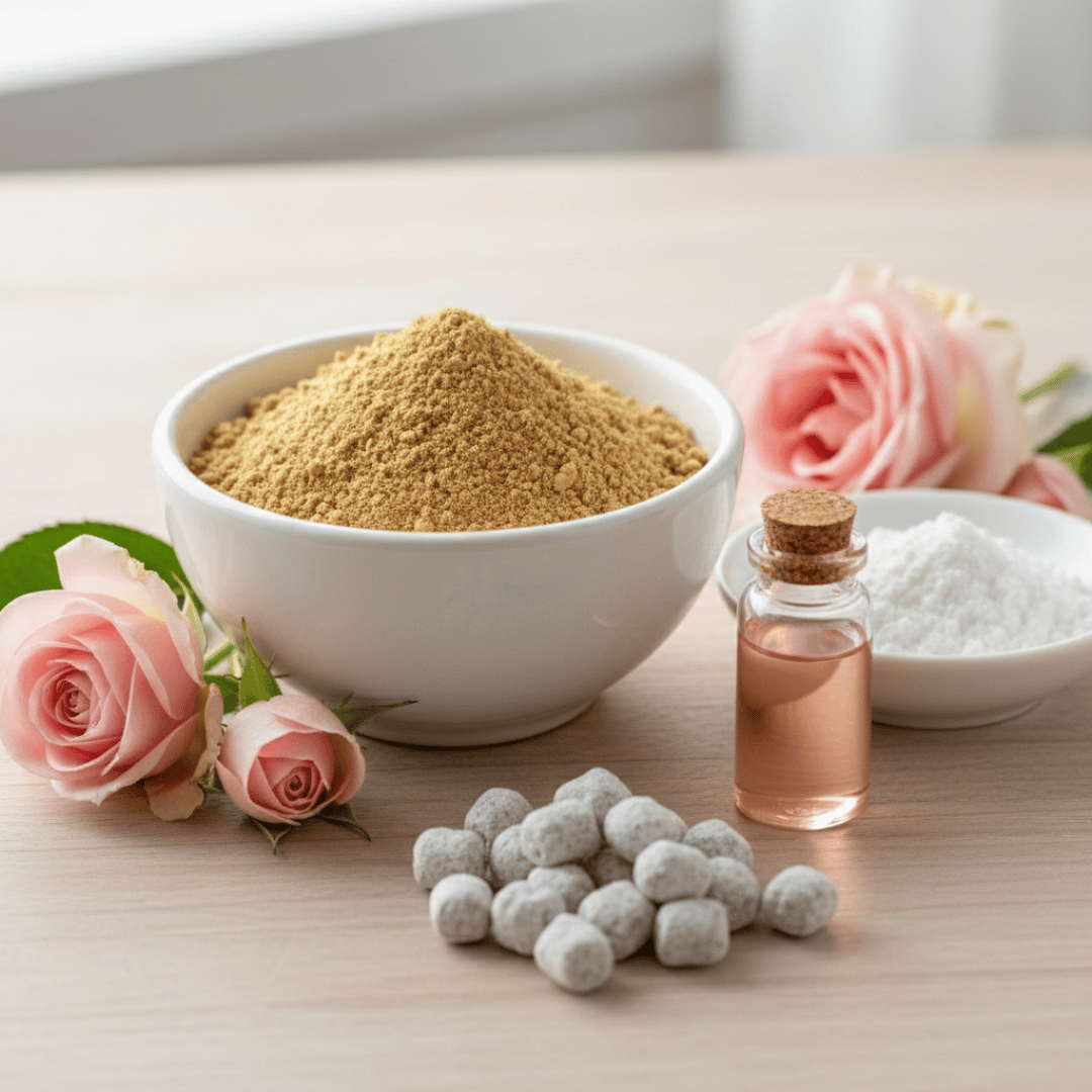 • This powder is then saturated with high-quality, fragrant rose oil and kneaded by hand into a dough.