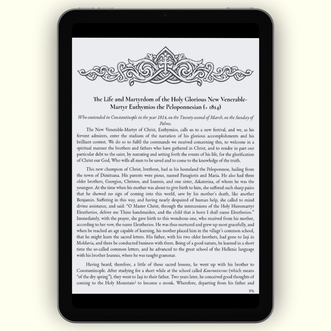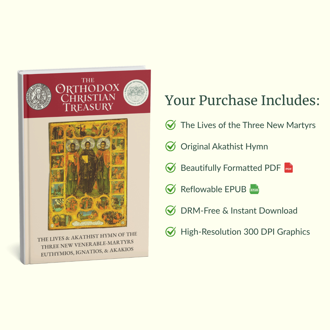 - The Lives of the Three New Venerable-Martyrs: Drawn from the 1862 Hellenic text by Onouphrios of Iveron Monastery, this is a moving and authentic account of their fall, their soul-shattering repentance on Mount Athos, and their courageous martyrdoms. Witness the divine visions that confirmed their path, the unshakeable boldness they showed before their tormentors, and the breathtaking miracles that confirmed their sainthood—including the holy head of St. Euthymios opening its eyes after death to look upon his brethren.