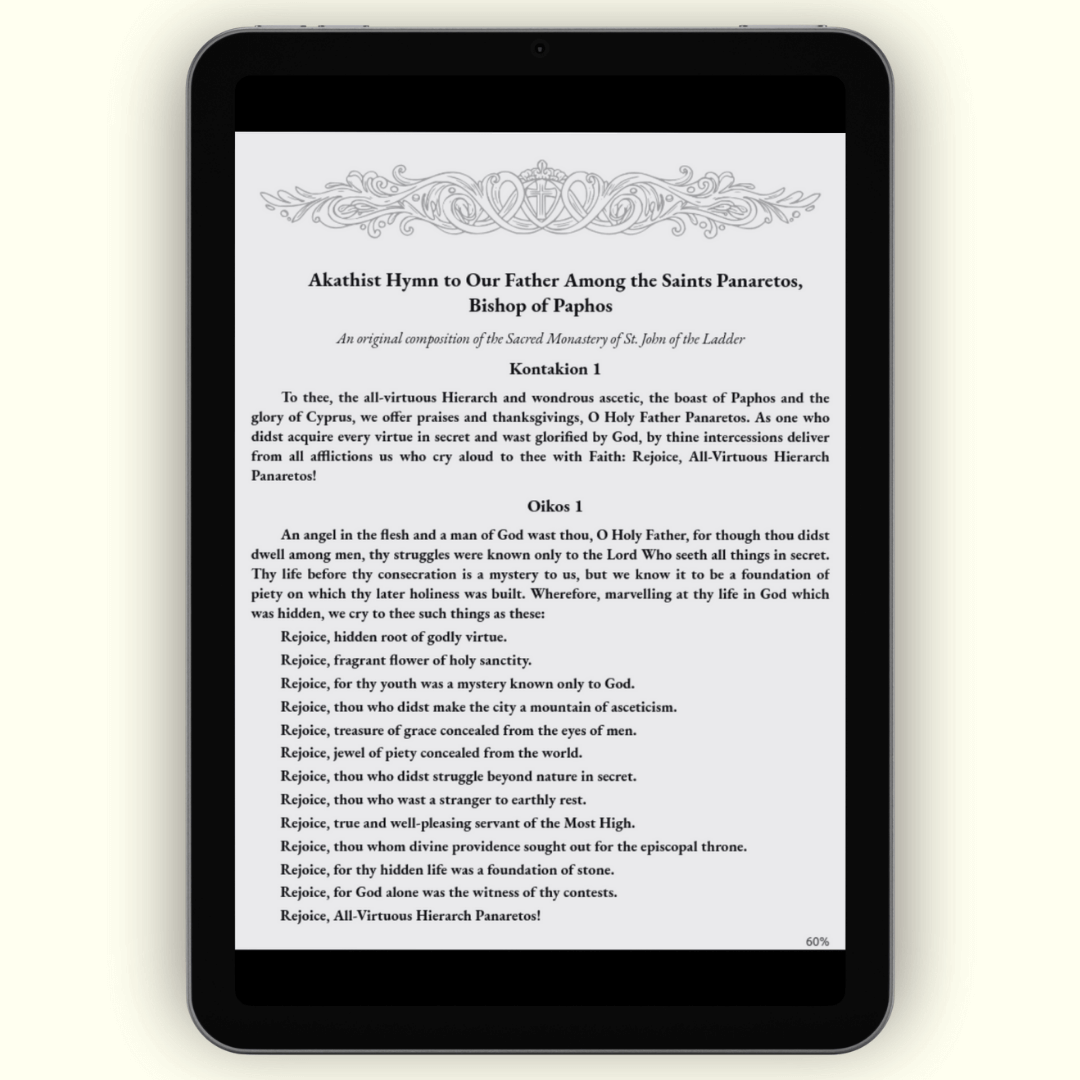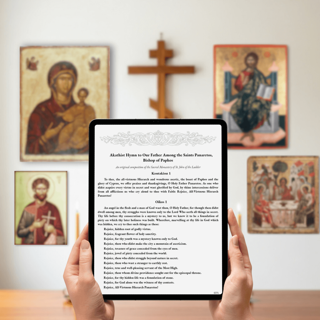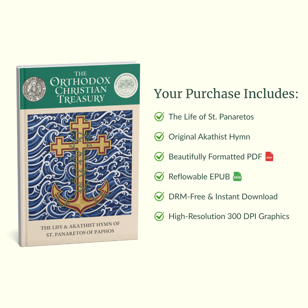 Discover a powerful model of holiness for our modern times. This beautifully designed ebook presents the first English translation of the astonishing life of St. Panaretos of Paphos (+1791)—a hierarch who lived like a desert ascetic in the heart of the city. Deepen your prayer life with an original Akathist Hymn to the saint, composed by our monastery for True Orthodox use. Your purchase includes instant access to both PDF and EPUB formats, completely DRM-free. Invite the intercession of this all-virtuous hierarch into your life today.