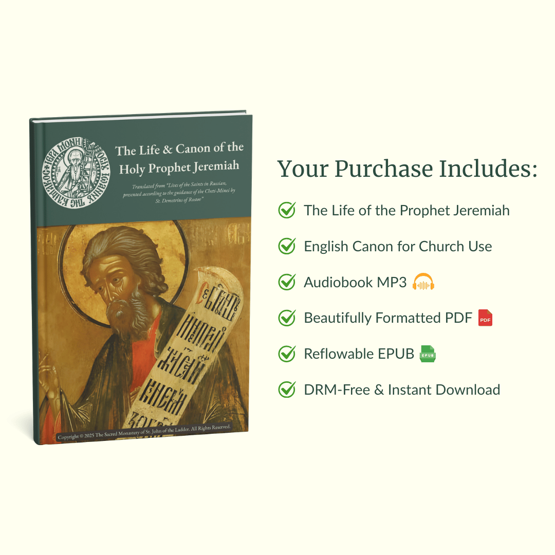 The Sacred Monastery of St. John of the Ladder is pleased to offer this exclusive digital bundle, bringing the story and prayers of this venerable prophet to you in a fresh, accessible, and spiritually edifying format. This is not simply a reprint; it is a work of love and prayer, translated by our brotherhood for the enrichment of your soul.